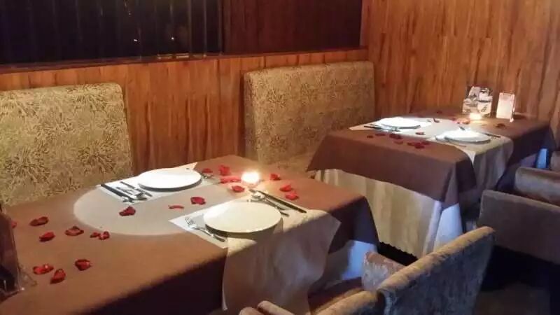 七夕节情侣的最爱,餐厅里光线暗暗,。服务生身上挂着小小发光的饰件,行走在幽暗中,宛若一只只漂浮在空气中的萤火虫。点上美食,听着轻松的音乐,餐桌上摇曳的烛光别有一番情调。