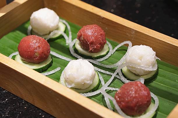 丸滑组合里面含有3颗牛肉丸,另外3颗滑类可以任选。无论是牛肉丸、虾滑、墨鱼滑,全手工捶打的吃起来就是如此Q弹,令人惊喜不已!