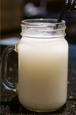 是将来自海南的新鲜椰子肉榨汁而成的天然饮品,保留了椰子的丰富营养成分,还可以喝到椰肉纤维!