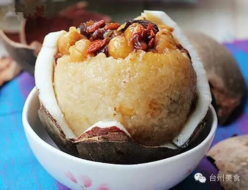 在海南的民间食品中,椰子饭是一种极为独特的食品,是由海南优质糯米、天然椰肉和椰汁一同蒸熟而成,是海南传统农家小吃。
