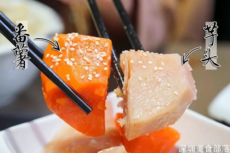 每个进店消费的客人老板都会送两块羔烧双宝,一人一块番薯和一块芋头,这几年送出的羔烧累积起来竟有36w份之多!切成大块的番薯芋头和白糖一起熬煮,芋头十分粉糯。