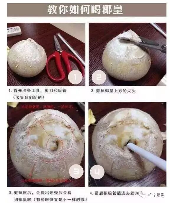 喝完汁以后你可以把它摆在桌上丧心病狂地取笑一番,然后准备取椰肉