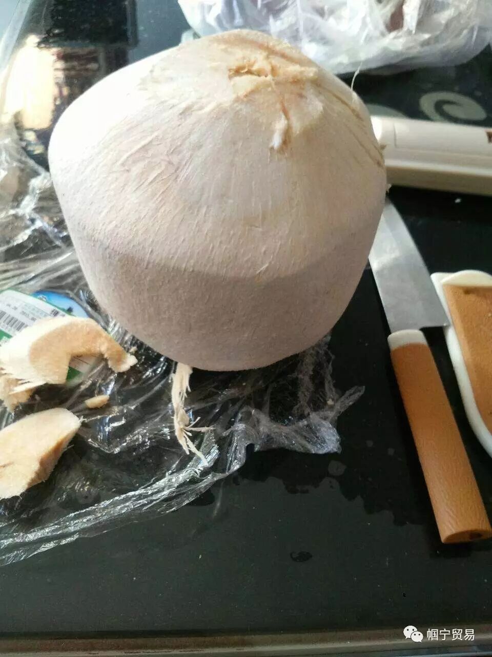 如果你的椰子是没有去除最外层的果皮的,得用大刀削一下。