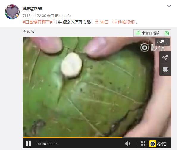 万万没想到只要一块口香糖就可以开椰子!新技能赶紧get起来√ 2023-04-19 23:50:29 椰子在海南随处可见不信你看路边那棵椰子树是不是!对不对!但是呢开椰子很麻烦没关系!三亚妹教你新技能分分钟get起来!是不是懵逼了难以置信口香糖这么大的能力“口香糖开椰子”引起网络热议网友纷纷进行了试验(图片来源微博)一块口香糖就可以开椰子是不是很神奇赶紧回家试试不说了三亚妹去买椰子了给这个技能点个ZAN吧!来源:腾讯视频三亚魅整理编辑