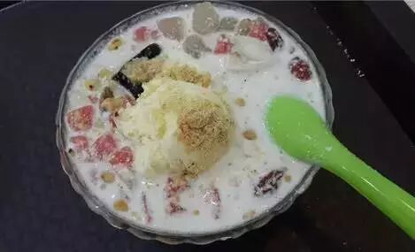 一碗清补凉就是一幅晃动的画。颜色是张扬中隐含内敛的清秀。大红的西瓜、暗红的大枣、红长弯动的通心粉、米白的蓬散的木耳花、可爱的绿豆、饱满的鹌鹑蛋……一样就是一种跳跃的颜色。它富含多种维生素、性质温和、有下火消暑、清热解毒、润滑肠道、健脾、补肺、减少脂肪、美容等功能。甜而不腻、爽滑润喉、冰凉可口。深受各省份游客的喜爱和好评,吃了还想再吃,到了海南千万不可错过。
