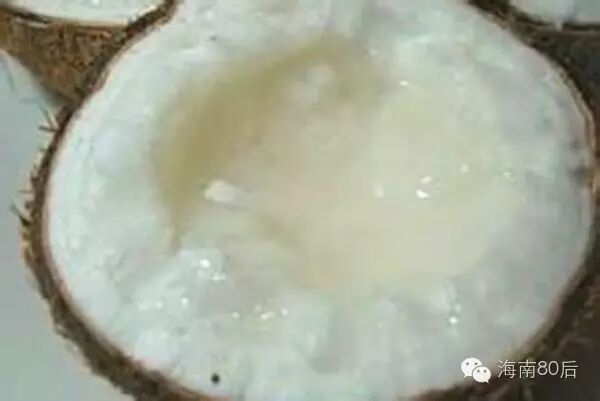 如果我们不去干扰椰子生长的话,椰子中会长出(如下图)一个大大的白色球状物,在文昌地区也叫椰子饼,椰子包。对椰子来说,那才是最珍贵的部分——胚。据说椰子的胚也有清甜脆爽的口感,但是要想吃到全靠碰运气。因为一来这种子活力要够好,二来要给它们一个良好的萌发环境。不妨买个成熟的椰子来照顾一下,体验一下椰子胚的特殊口感吧。