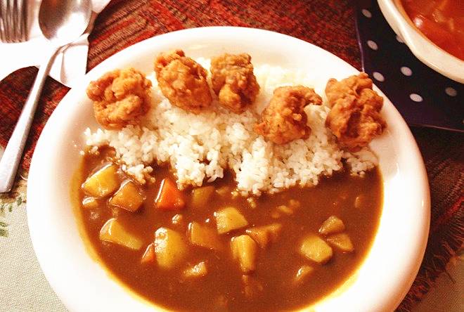 咖喱制造家的咖喱味道都不错,支书强推炸鸡咖喱,炸鸡酥软,咖喱浓香,非常好吃。