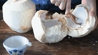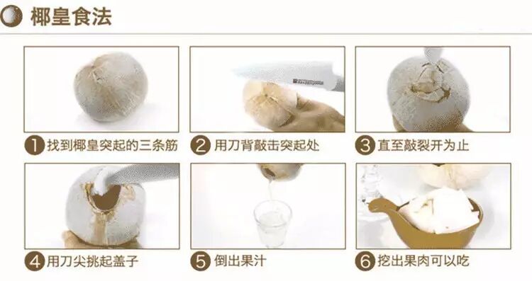 生吃:把椰子打开,把椰肉拿出来直接吃。生吃营养价值较高,可是吃起来比较硬