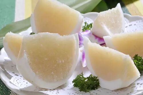 椰子糕是椰子精华的浓缩。其超Q是最大的特色,甜而不腻中夹着一丝丝韧劲,软软的、绵绵的。