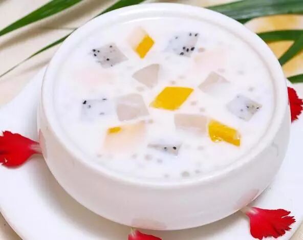 椰奶有很好的清凉消暑、生津止渴的功能。而西米白净滑糯,营养颇丰,性温。两者相结便成了风味独特,椰香四溢、西米软糯,十分适合饮用。