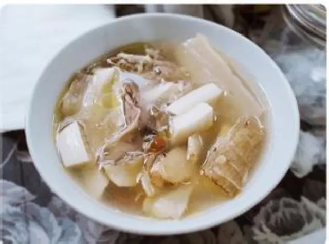 5. 把备好的椰子肉加入到鸡汤里面,再次煲开后转用煲汤模式煲给两个小时;