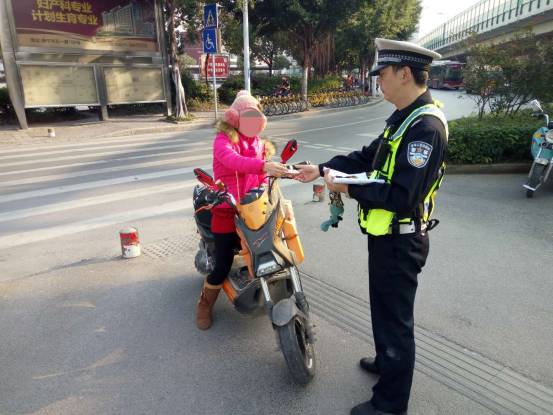 在执勤执法过程中民警广泛发放宣传资料,让违反交通法规的驾驶员参加体验站岗和违法学习,争取群众对摩托车、电动车违法停车整治工作的理解与支持,促使群众改变交通陋习,提倡文明交通出行方式。