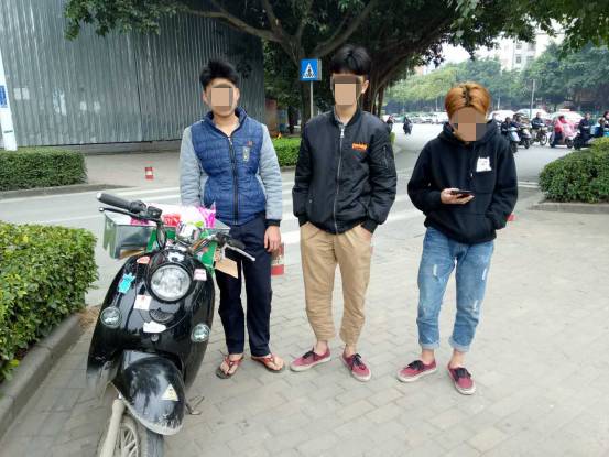 一辆电动车载了三个人和烧烤工具,这些年轻仔心够大哦!
