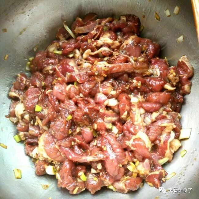 1、把羊肉切成丁,放入除孜然以外的调料,多少适量,最少腌制20分钟