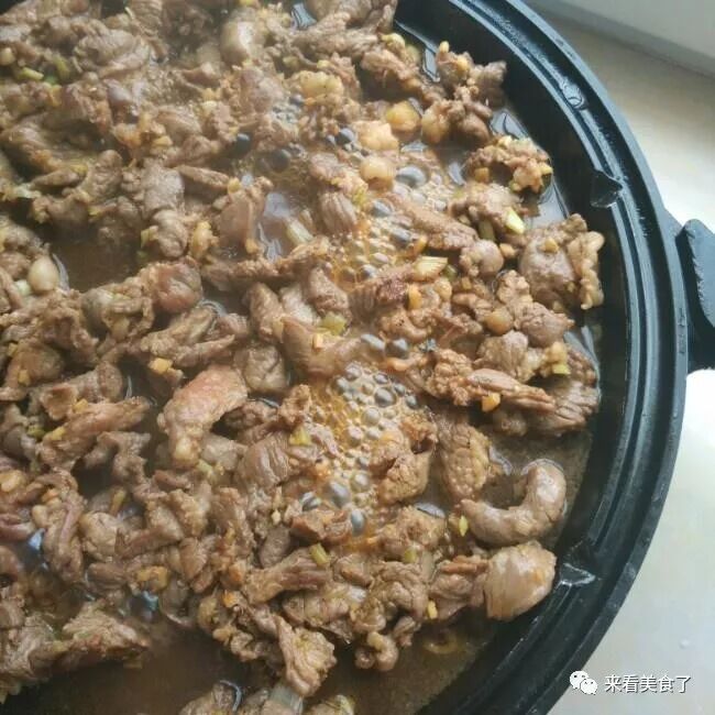 4、汁收干后,把盖子打开。慢慢煎,这时要多搅拌,让羊肉受热均匀,那羊肉会更脆