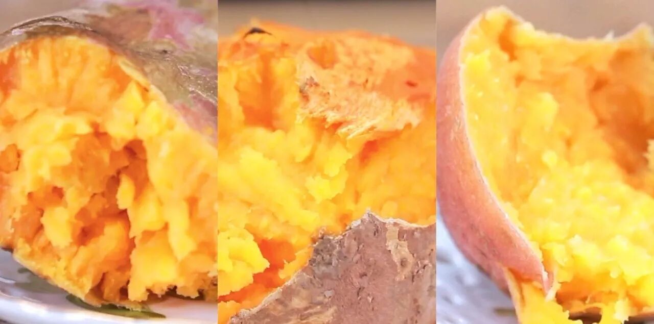 跟炭火烤的红薯不同,这三种烤红薯没有那一层被烤成焦糖的皮,但是更加健康,烤出来也很软糯香甜。