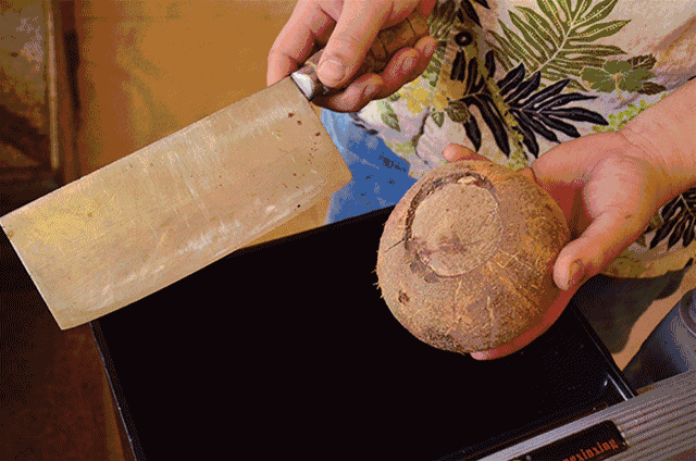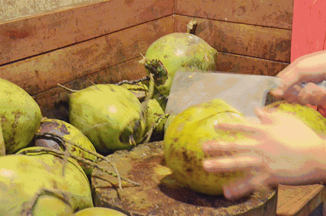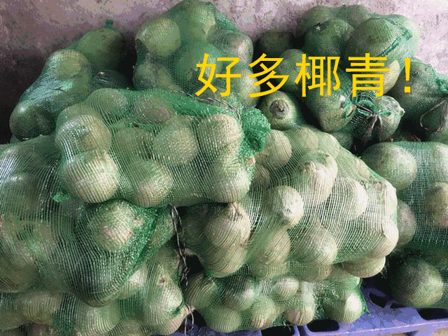 一地椰青随你慢慢挑选到满意为止,之后交给师傅,上演现!场!砍!椰!子!师傅每天要砍几百只椰青,功力强劲极为熟练,大概3刀就可以砍开一只椰青了。