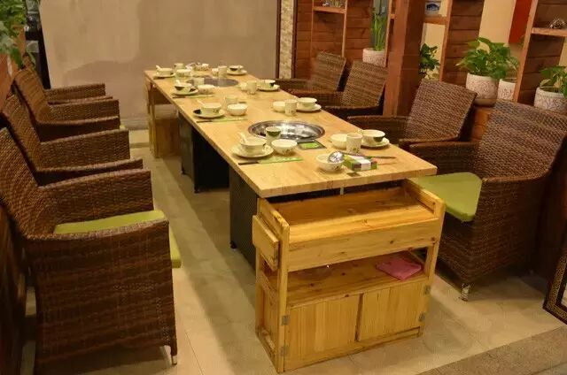 全实木装修风格,整个环境显得格外温馨别致!再加上几个盆栽的映衬,更加清新怡人。