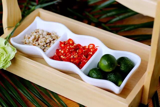 3.椰子鸡火锅自海南传出,蘸料就已经固定化:秘制酱油+小红米辣+沙姜+小金桔。