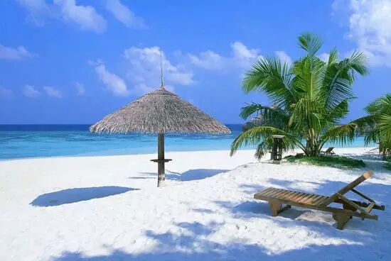 蓝天白云、椰林树影、水清沙白,这世上最美好的事,就是躺在沙滩上,晒着和煦的阳光,吃一只新鲜的椰子。
