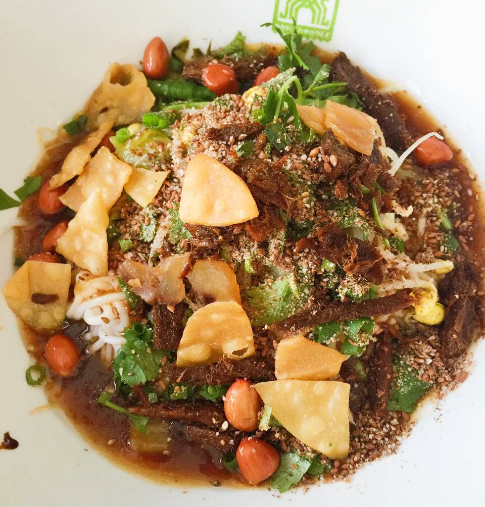 配上炸过的面衣、芝麻碎、牛肉干和花生
