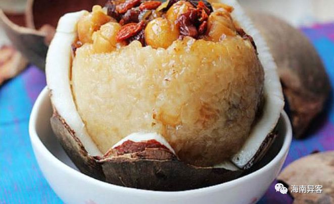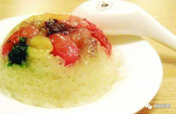 海南椰子八宝饭,一般在海南有喜庆的节日,如结婚,入宅,经常见到,不用说在饭店是随时可见的咯。