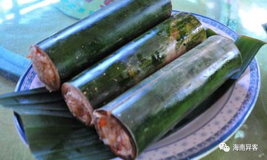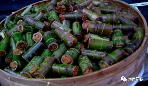 海南黎家竹筒饭是海南黎族传统美食。是用新鲜竹筒装着大米及味料烤熟的饭食。黎族民同,多 于山区野外制作或在家里用木炭烤制。现经烹调师在传统基础上改进提高,使之摆 上宴席餐桌,声誉甚高,成为海南著名风味美食。