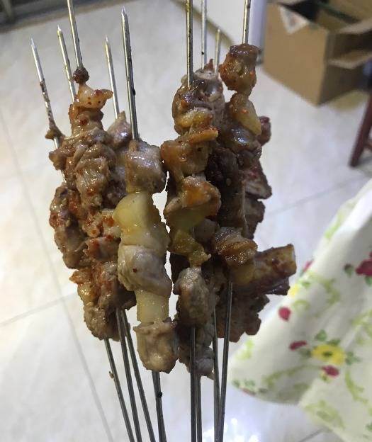 在北十八烤鸡胗附近,还有一家串儿店,没牌匾、不挂幌,大家都叫它北十九道街小串。烤串的是个女老板,每天她只准备四五百串烤品,晚上4点半营业,卖完就闭店。这家店选肉有讲究不说,就连烤串儿用的调料,老板娘几乎都是自己磨制。