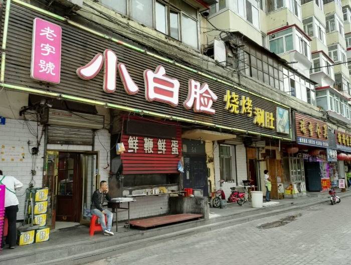 当年安升街还是一片市场的铁皮房时老板就在这里卖烤串儿,到现在已经30年。因为店主年轻时脸长得白,还爱干净,总穿着白衣服烤串儿,客人都调侃他,就叫了这个名字。当然,延续下来的还有他家一直未变的“老味道”。