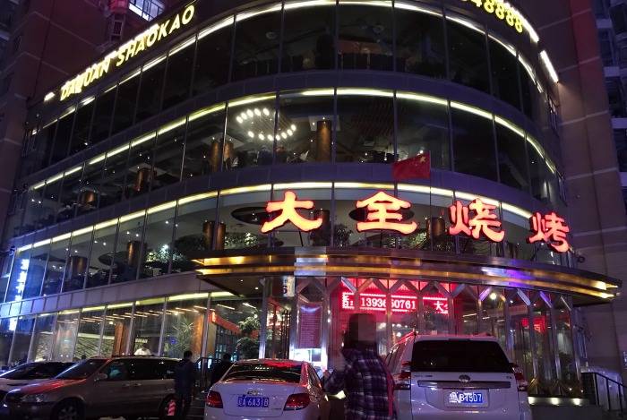 大全烧烤,在哈尔滨也算是比较有名的了,最早的时候大全烧烤只是一家几张凳子的小店铺。现在是道外的独立几层大楼,整体面积那是相当大!烧烤店整的跟酒楼似的。口味可以,嫩、滑、爽,还有各种肉串、各种筋、豆腐卷、毛肚锅什么的也是必点。