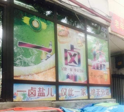店小,没牌子,就弄了一个灯箱,写着一卤盐仨字。这装修倒是跟他家的串一样简单。只用一撮盐卤,卤完了就上去烤,没有别的乱七八糟的调味料。