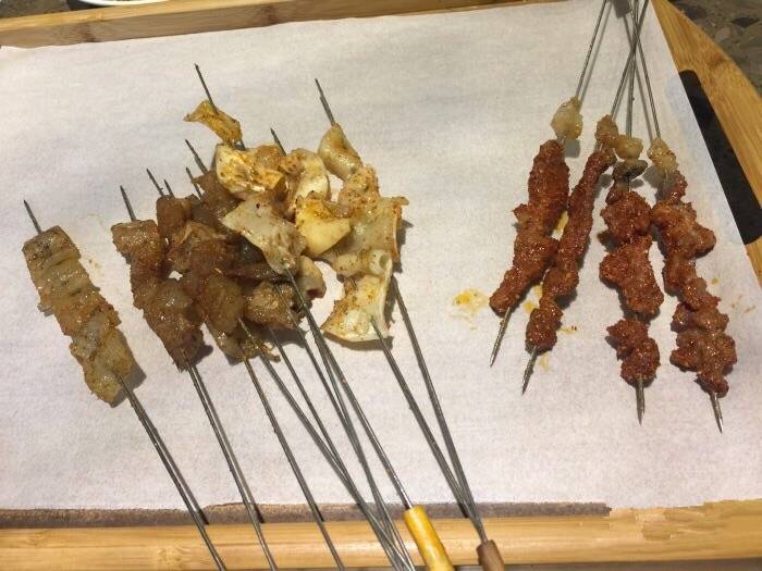 奇的是,打开他家竹简菜单一看,竟然只有10种烤品。选择这么少,生意这么好,想必味道不一般!果真,吃上一口烤鸡胗,爽脆里透着劲道,烤金钱肚还是芥末味的!