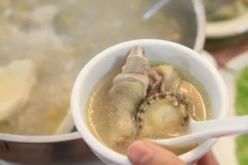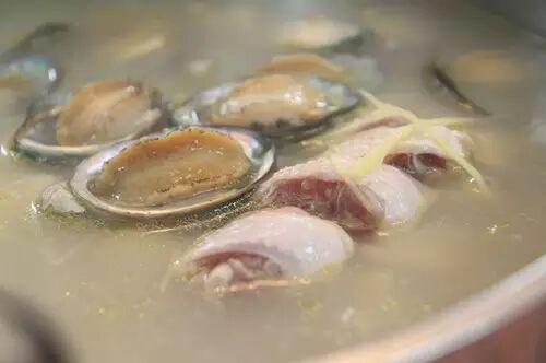 清远鸡系椰子最佳配搭,水滚后将鸡和鲍鱼一起落锅,盖好8~10分钟即可以吃用。这样鸡质最好,而且啖汤足够清甜。