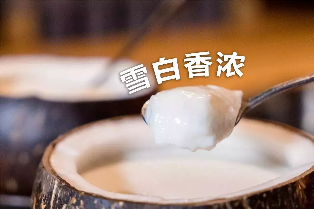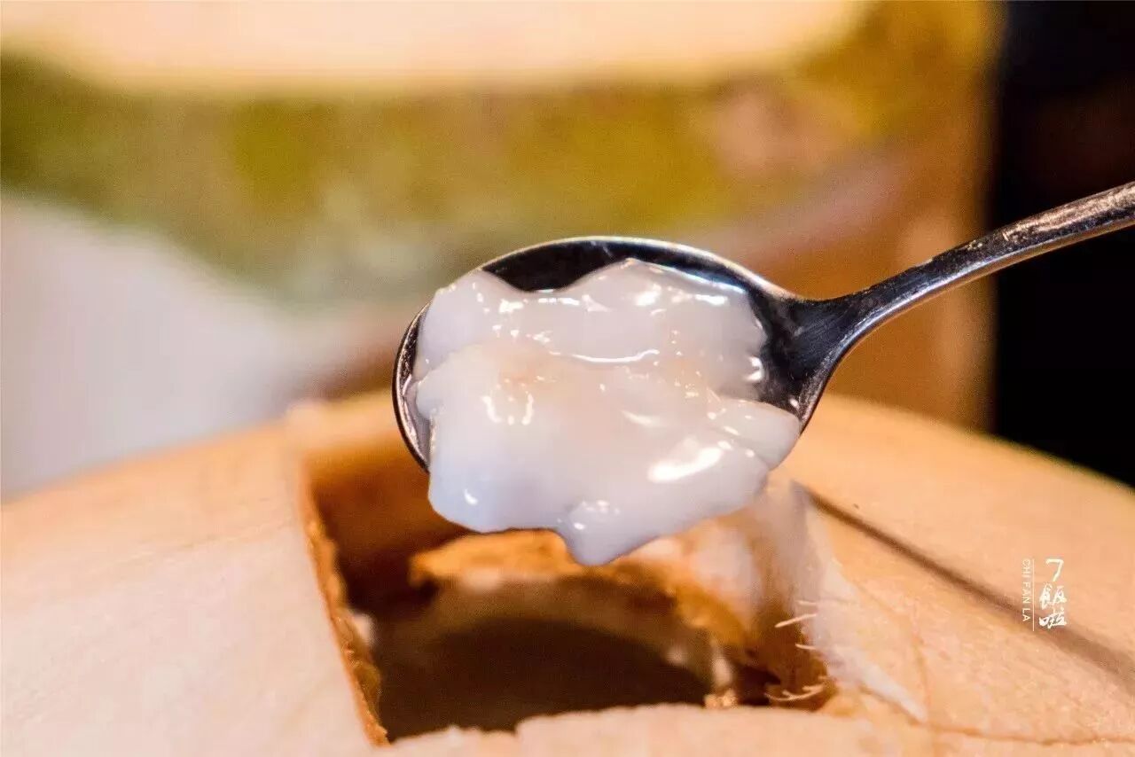 整整一只椰子摆在你面前怎能不心动!质地要比果冻更加软滑香甜,入口温和,不像喝冷饮那样刺激口腔,白白嫩嫩的都不忍心动嘴啦~