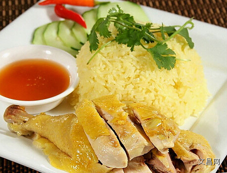 海南鸡饭起源于中国海南岛的文昌市,在海南话里叫做“guail bbuil”(鸡糒)。海南人以文昌当地的白切鸡做法,配以鸡油和浸鸡水烹煮米饭,“创造”了海南鸡饭。有意思的是,现今一般食家都认为新加坡的海南鸡饭为正宗。鸡饭古老吃法是把煮熟后的鸡饭用手捏成“饭团”,再配上“白切鸡”,才算是传统的“海南鸡饭”。白切鸡和米饭的香味相互渗透,不仅闻着香,吃着更香~