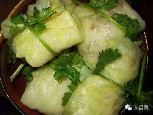 菜包饭历史悠久,在定安县定城及邻近村庄老百姓中十分流行。所谓菜包饭是把肉、菜、饭混在一起。在定安,有“正月初三祭吃菜包饭”的说法。菜包饭看似简单,但制作起来也颇费功夫,除了必备的瘦肉之外,蒜头、虾仁、鱿鱼等用料也是必不可少的。丰富的“馅料”和清爽的菜叶在一起构成了一道特色美味佳肴。吃菜包饭不需要顾忌什么形象,吃的时候,选用你喜爱的酱料(如虾酱、辣椒酱或什锦酱)洒在油菜叶上,趁热把饭打进菜叶里,双手大张,拢着菜包饭,张嘴大咬就是了。虽然手上都是油和水,还有满嘴的饭粒,但这样的吃起来更香~