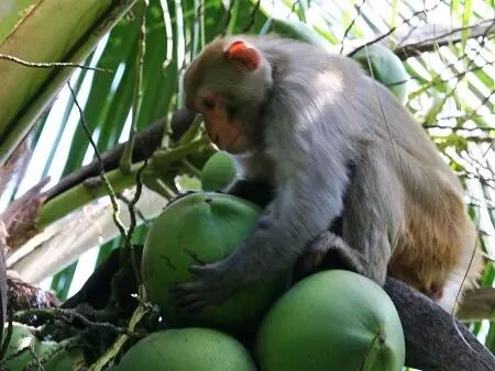 6、观赏猴子摘椰子表演