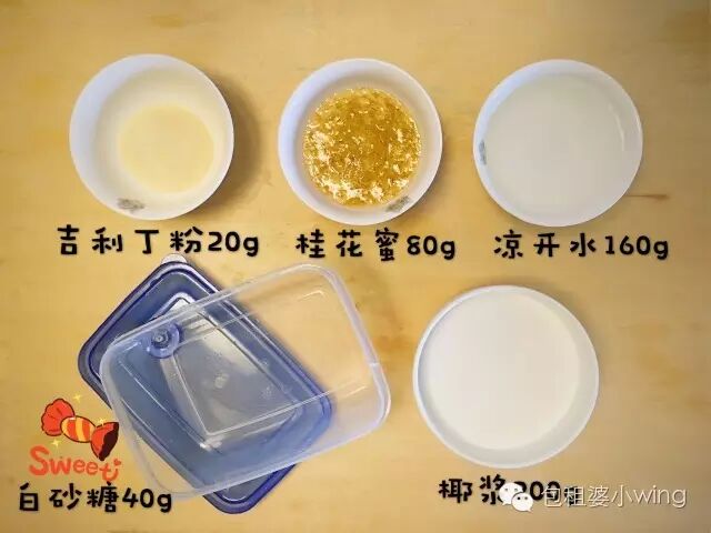 分别是椰浆3层、桂花蜜糖水3层,间隔开来。