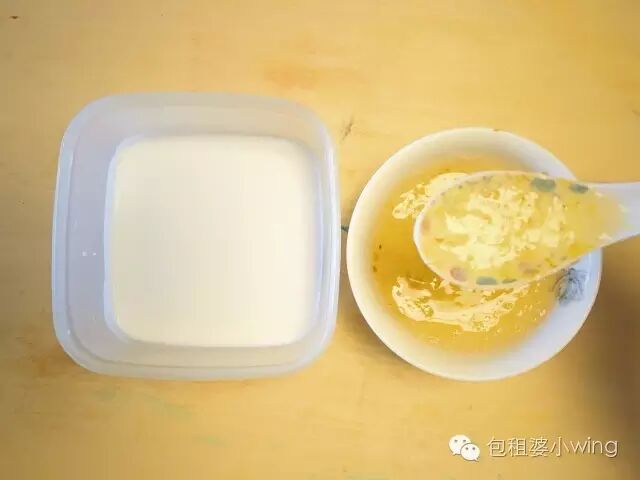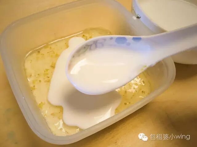 小wing:吉利丁粉要先完全溶于冷水中先方可加热。如果直接加入加热吉利丁会产生许多小疙瘩。