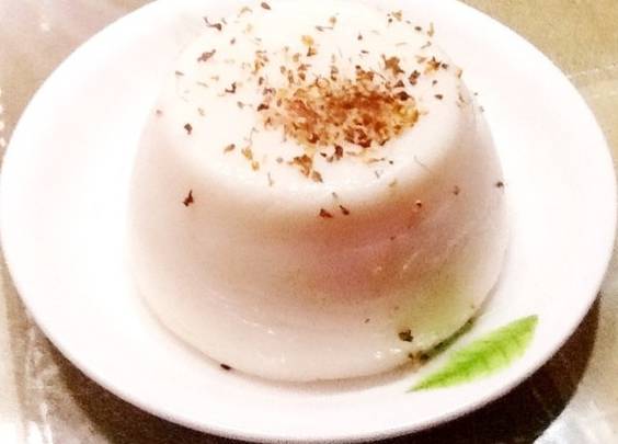 4.或是用水泡一下,洒在成型的牛奶冻上。