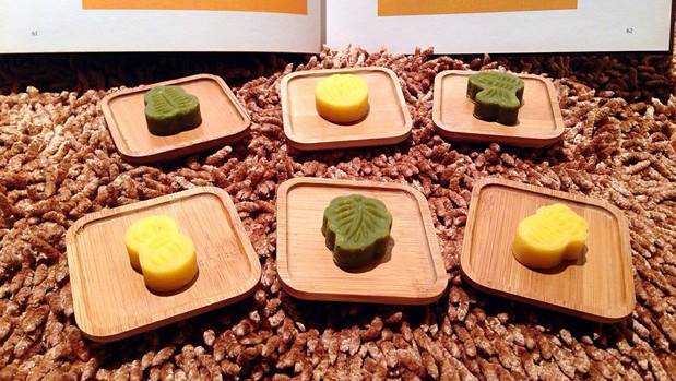 8.豆沙蓉盛出,晾凉,取一半的绿豆沙,加入抹茶粉,拌匀;