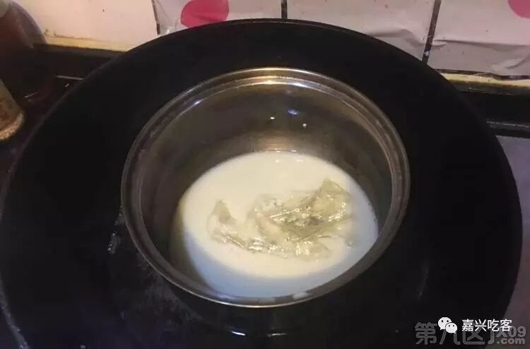 把剩下的糖桂花,水,糖隔水加热至无颗粒,