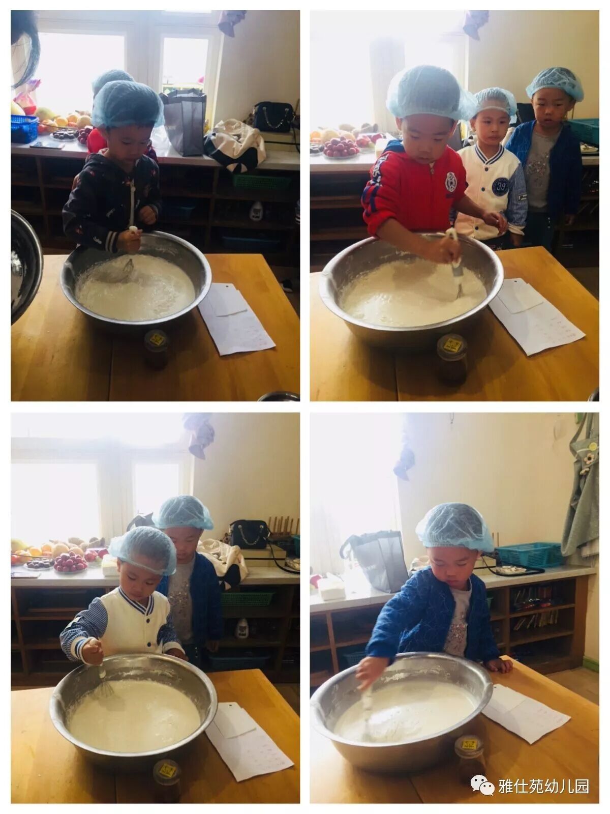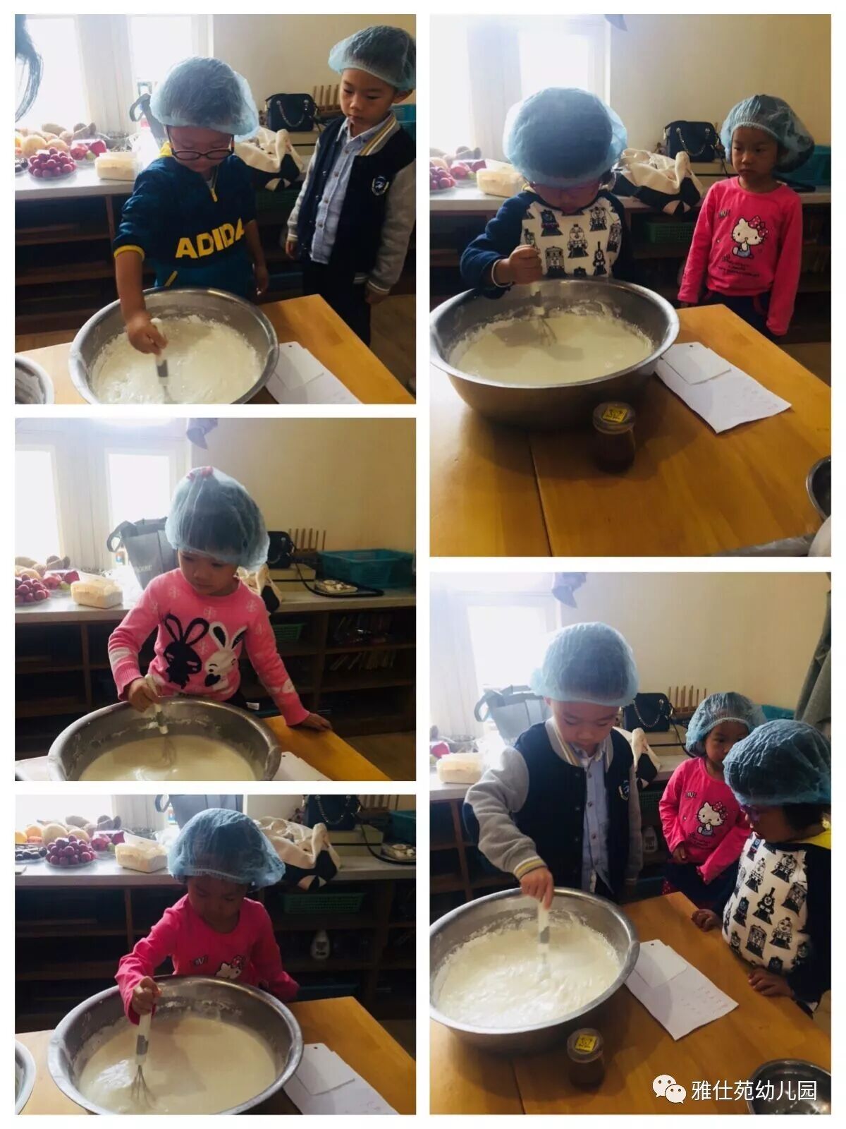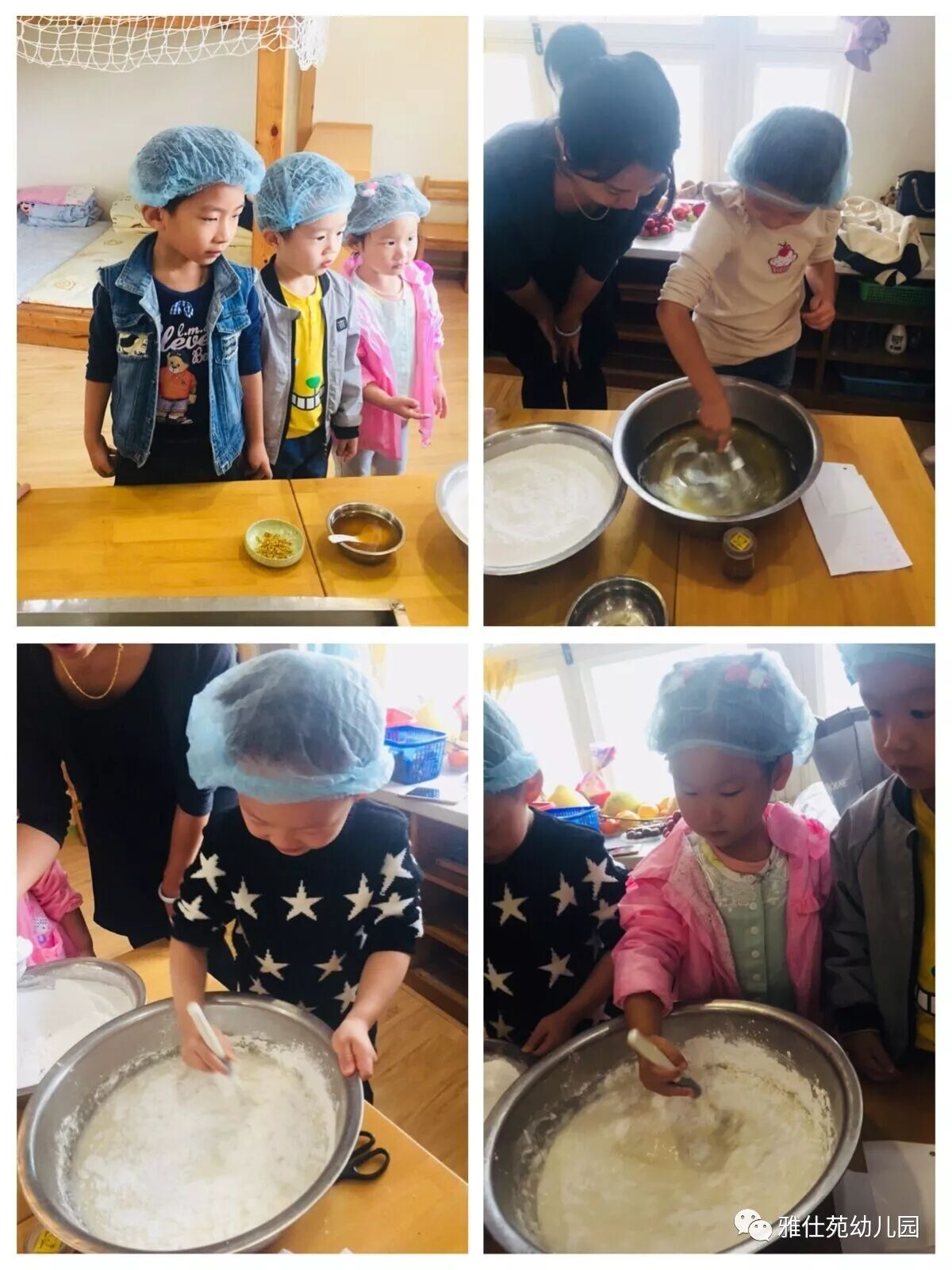 小朋友们每个人都把小手洗的干干净净,争先恐后的想来做桂花糕,这干劲儿还真像那么回事了!