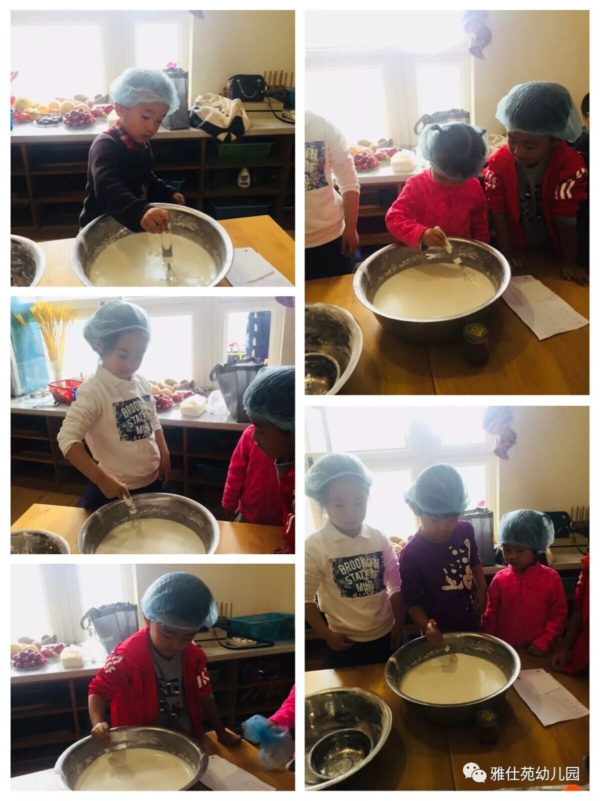 看,米粉、牛奶、油、糖在小朋友的搅拌下慢慢融为一体。静置片刻,上蒸笼喽~哇咔咔~有没有流口水!那就赶紧动手开吃吧!