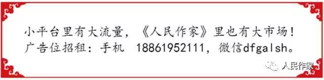 关注方法:点击本页眉头上“人民作家”四个蓝字,加关注,查看历史消息即可转发作品、关注作品动态。转发的人越多,形成的点击量越大。
