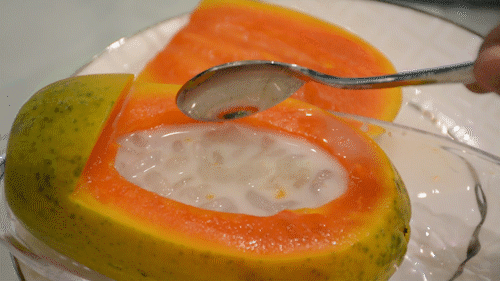 雪白的雪蛤晶莹剔透的,吃在嘴里滑嫩清润,再配上木瓜的清甜,口感度像火箭一样直线上升
