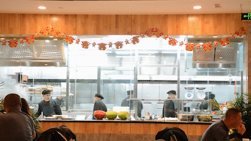 把厨房搬到大堂,当着顾客的面做菜,坐在大厅里就可以看到厨师们忙碌的身影