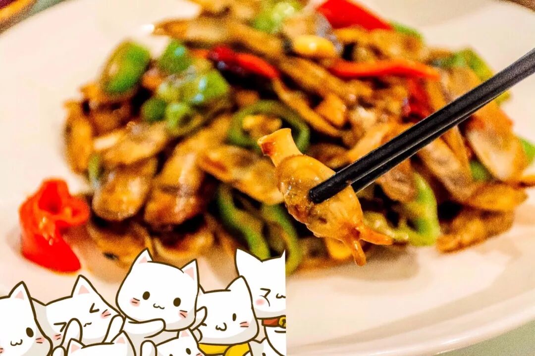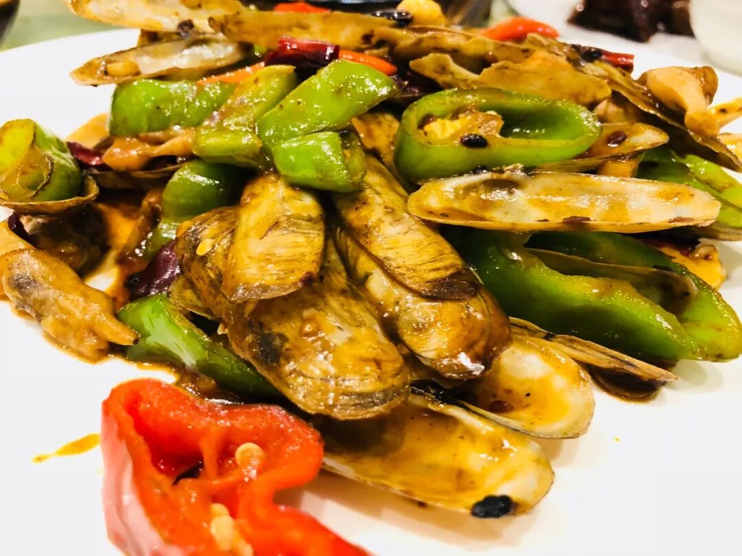 蛏子个头很大,肉质很厚,吃在嘴里很有嚼劲,十分入味,满口爆香