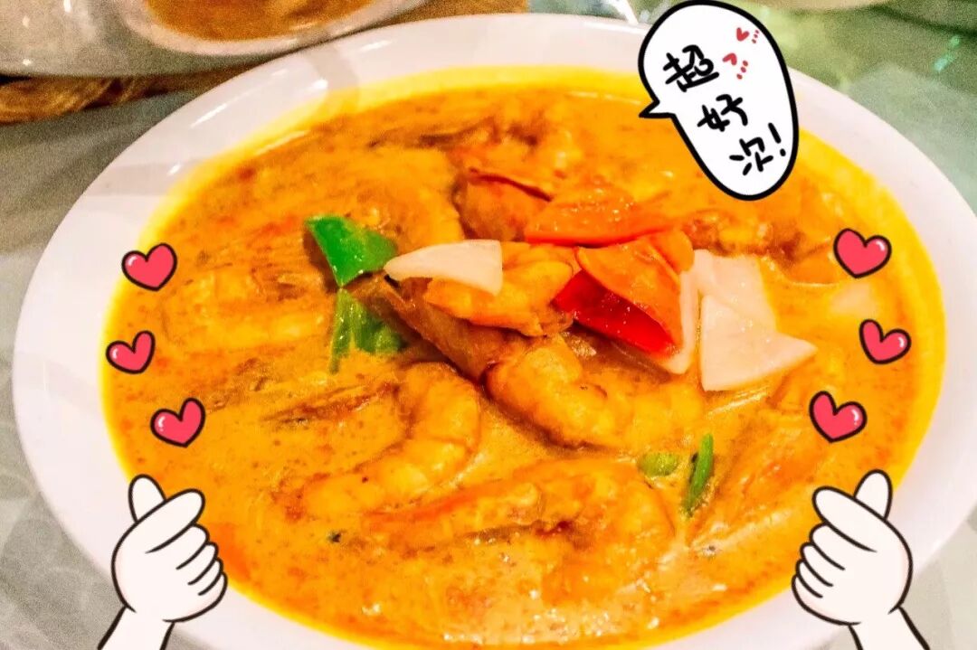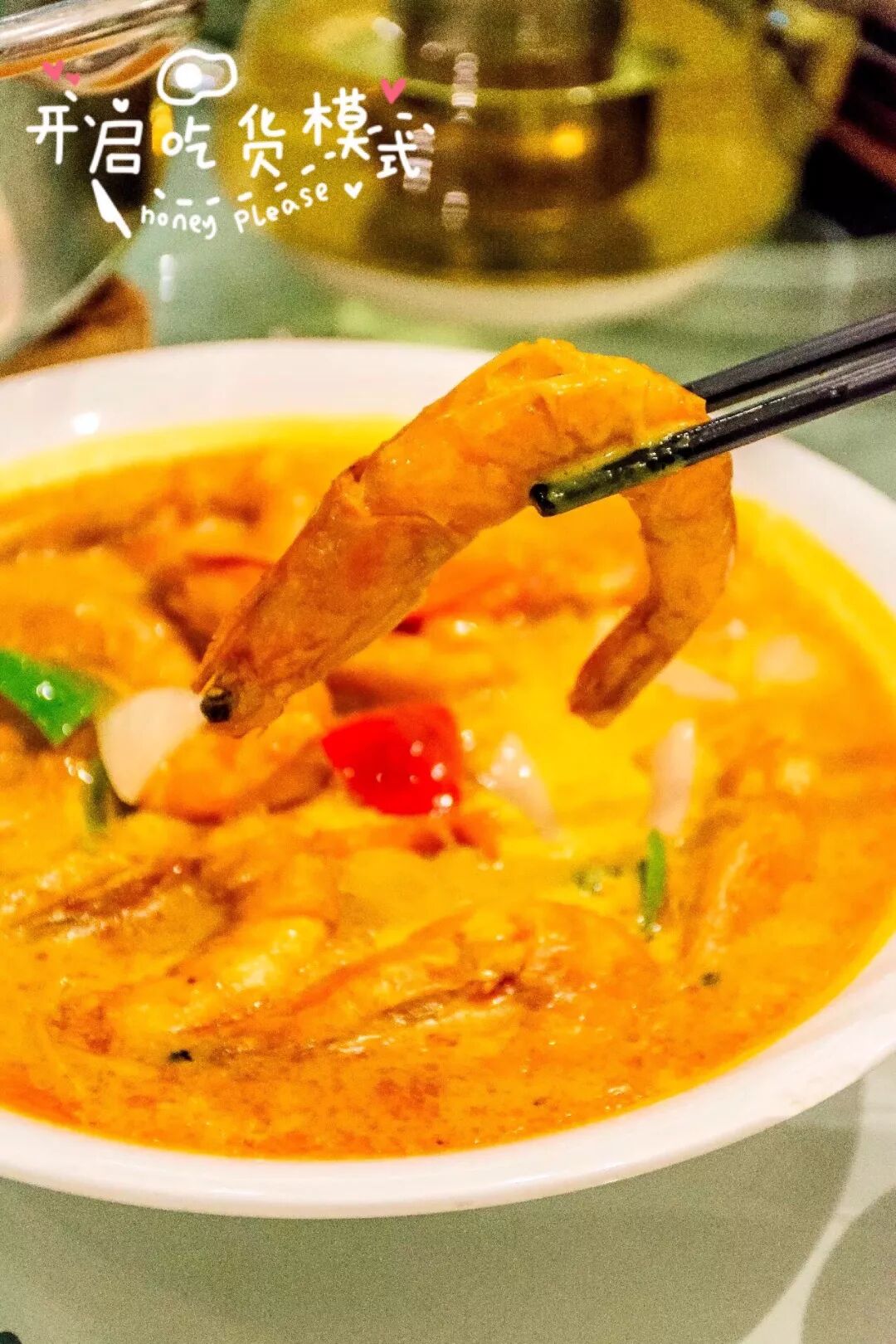 每一只虾个头都非常大,被咖喱与椰汁调和后的汤汁紧紧包裹,口感爽脆,新鲜,椰香香而不腻,非常入味
