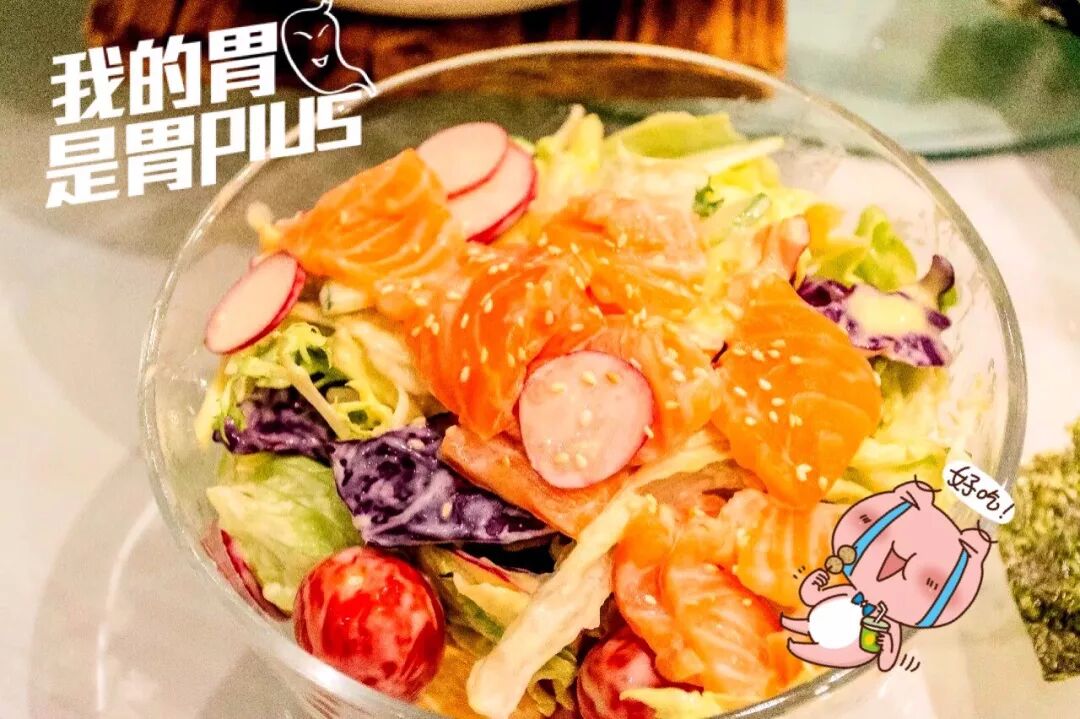 招牌的时蔬三文鱼沙拉也是给足了份量,这一份色彩缤纷,颜值过人的沙拉吃起来也很带感哟~